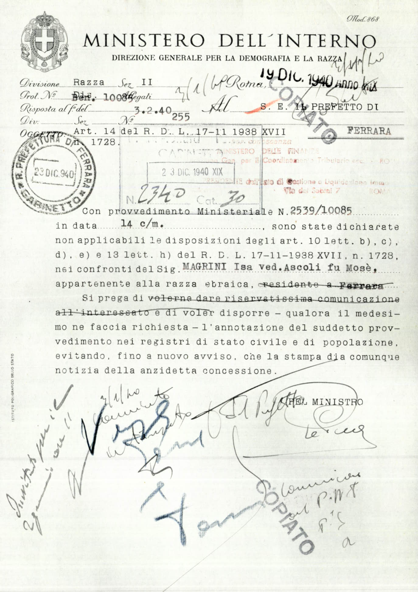 Ferrara - 1938, la persecuzione ebraica online: l'Archivio di Stato di Ferrara pubblica le carte della Prefettura sul portale Lodovico