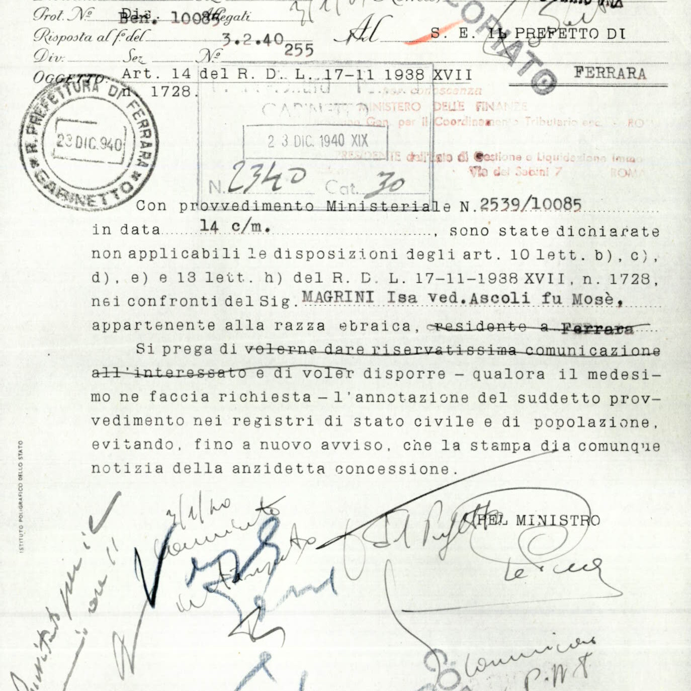 Ferrara – 1938, la persecuzione ebraica online: l’Archivio di Stato di Ferrara pubblica le carte della Prefettura sul portale Lodovico