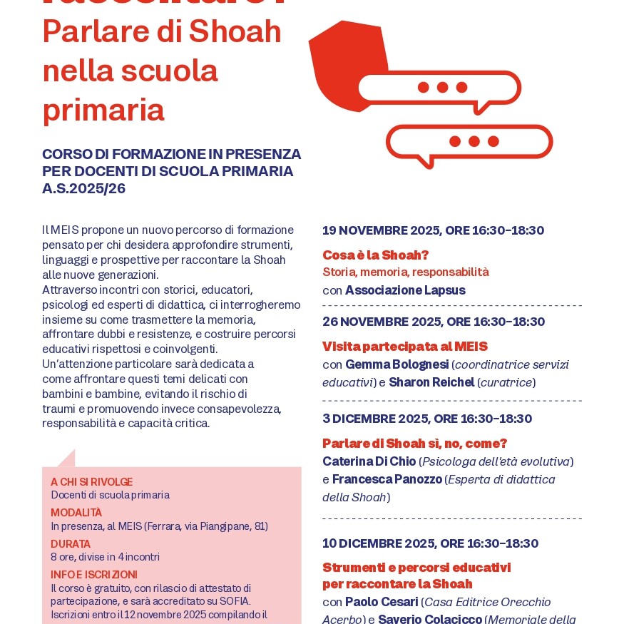 Il corso è pensato per chi desidera approfondire strumenti, linguaggi e prospettive per raccontare la Shoah alle nuove generazioni.